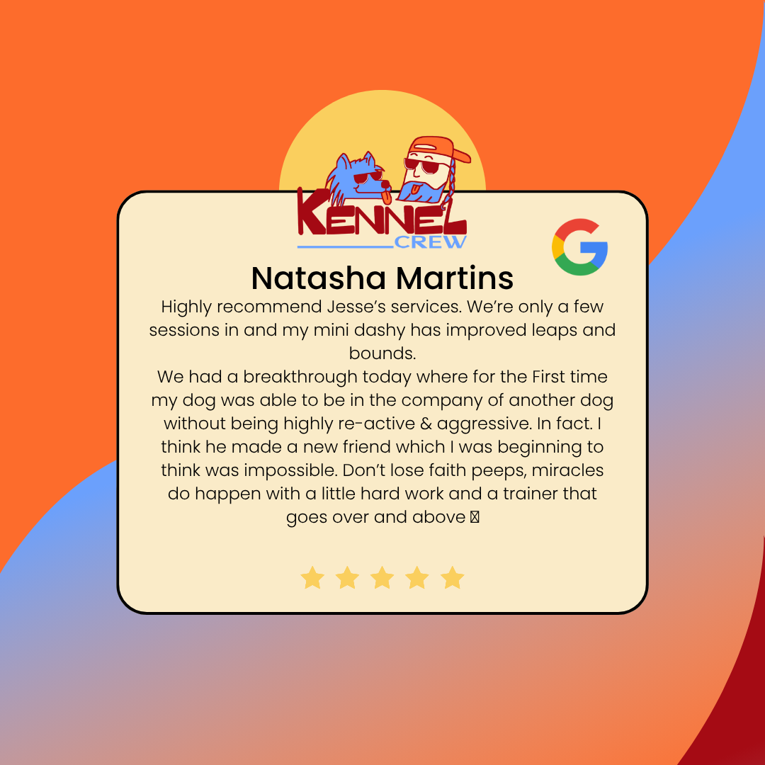 At Kennel Crew, we work with you and your dog one-on-one in real-world environments. not just a training hall. We get to the root of what's driving the reactivity and build a practical, personalised plan that creates lasting change.